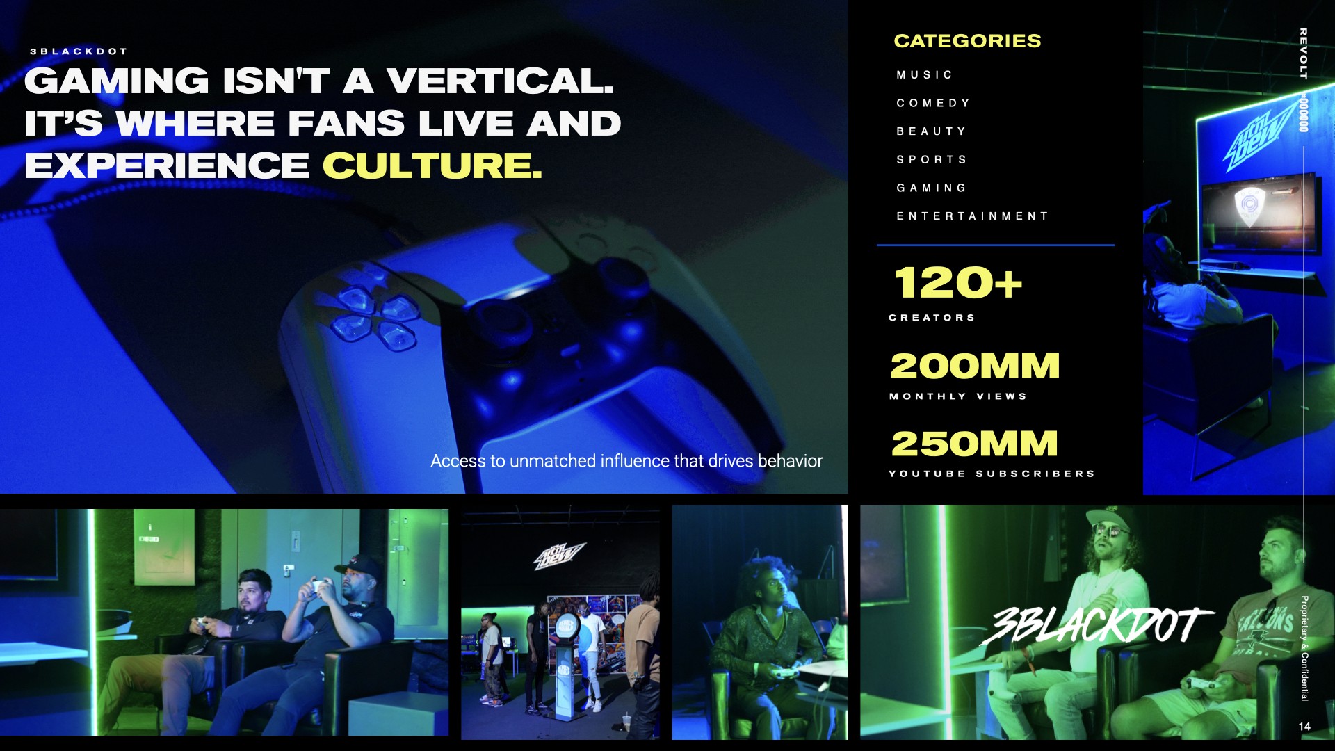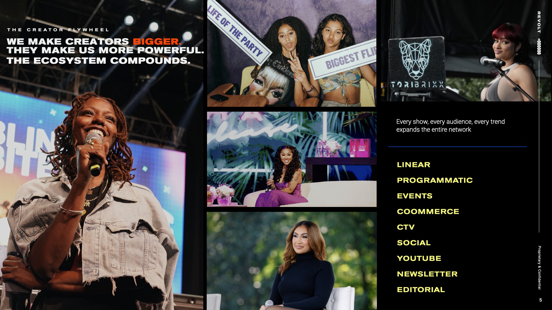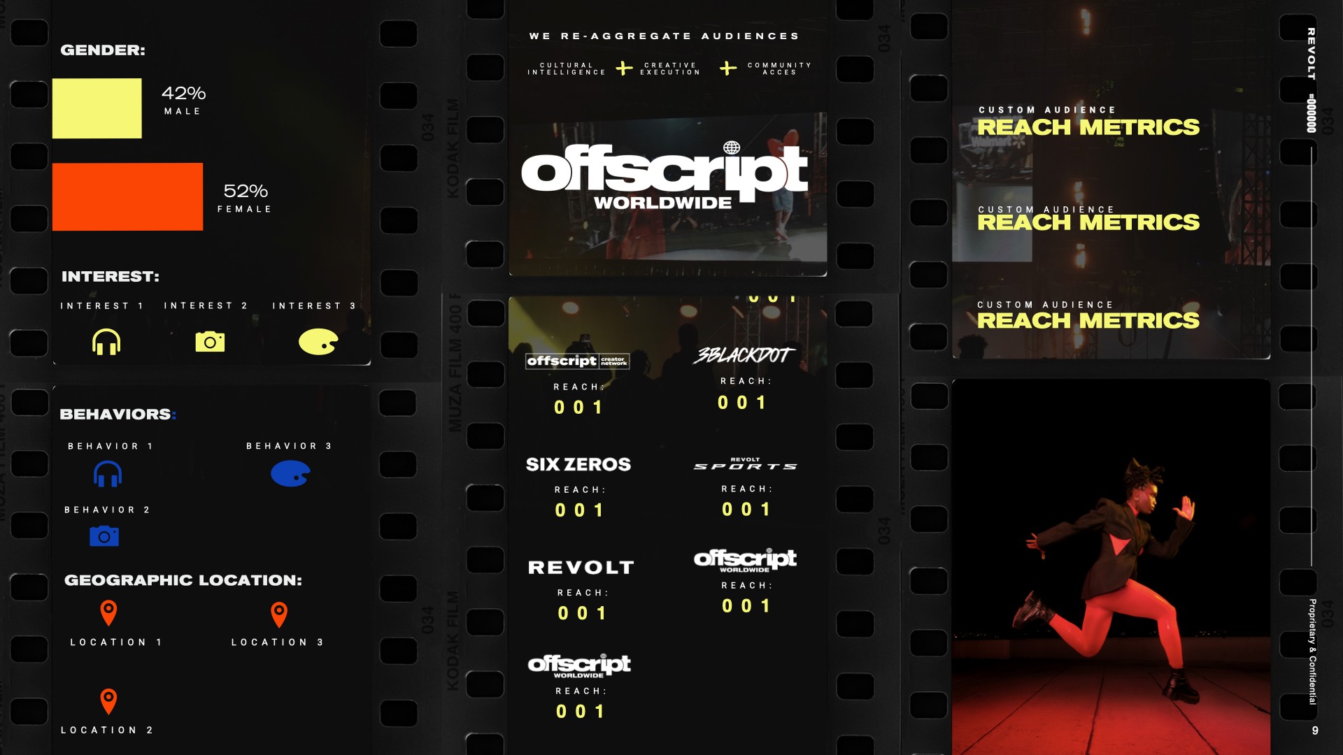 Offscript Worldwide is REVOLT TV's newly launched creator network — the first creator company built like a media empire. Spanning six verticals including production, creator networking, sports, gaming, and more, Offscript represents a new era of culture-driven content at scale. I was brought in with full creative direction to concept and design the executive pitch deck used to present the brand and its full ecosystem to stakeholders and partners.